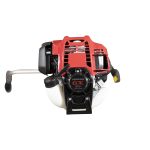 Een bosmaaier van 47,9 cc met fietsstuurhandgreep, anti-vibratie, comfortabel harnas en twee optionele hulpstukken.