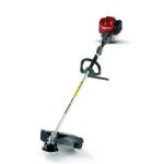 Een trimmer van 25 cc met gebogen schacht en beugelhandgreep.