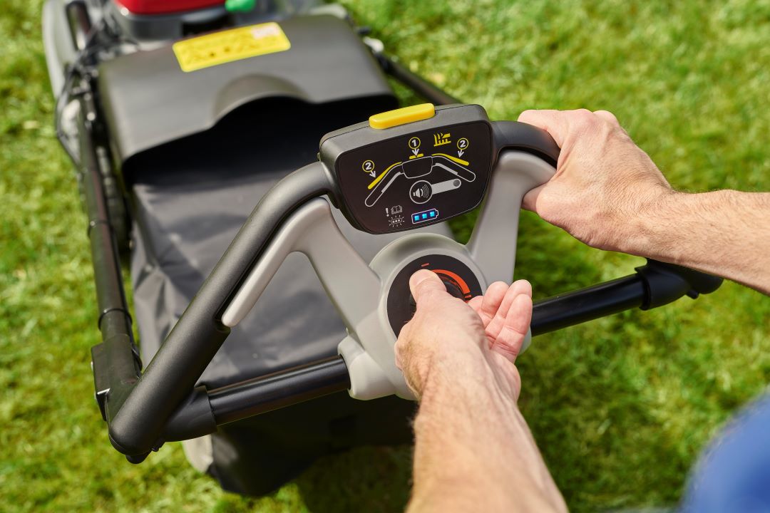 Roto-stop: Stopt de messen, maar laat de motor lopen terwijl u de graszak leegmaakt of beweegt over het tuinpad met de zelfaangedreven modellen.