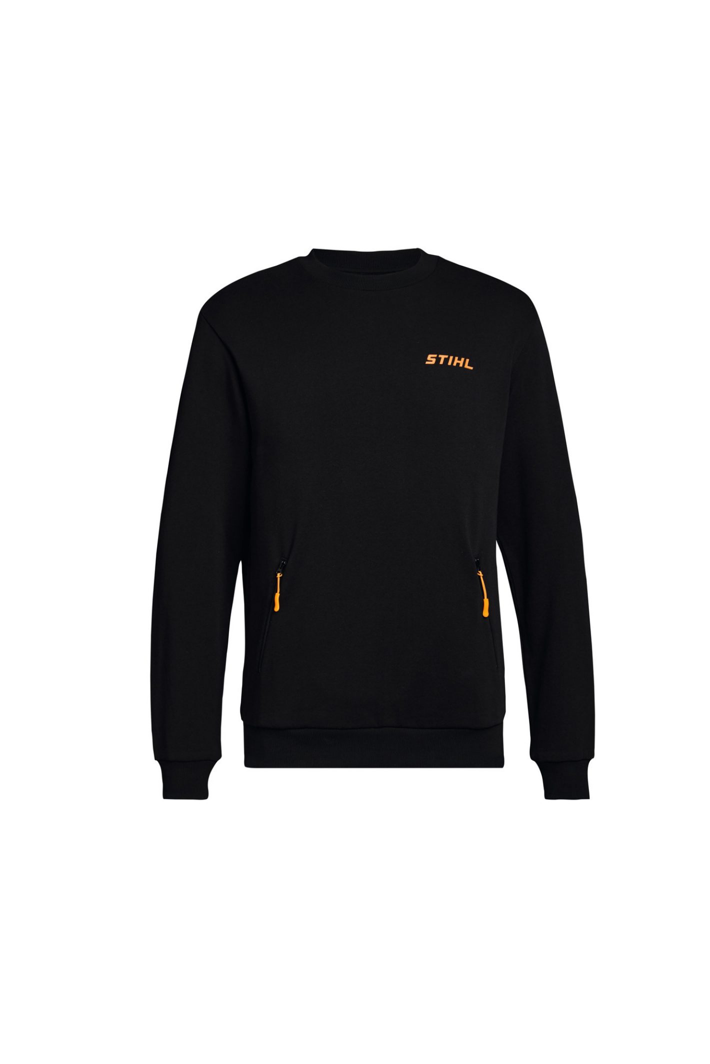 Eenvoudig zwart STIHL sweatshirt. Twee ritszakken op de buik en oranje trekkoord. Op de borst staat het STIHL logo in een lichte 3D reliëfopdruk. 100 % katoen.