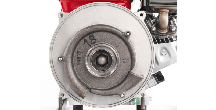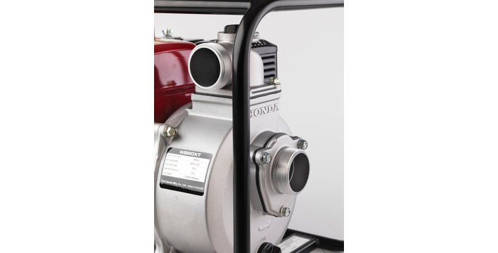 Gietijzeren pomp die 600 liter per minuut verpompt, deeltjes tot 6 mm, met een totale opvoerhoogte van 32 m.